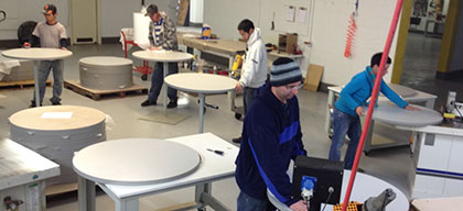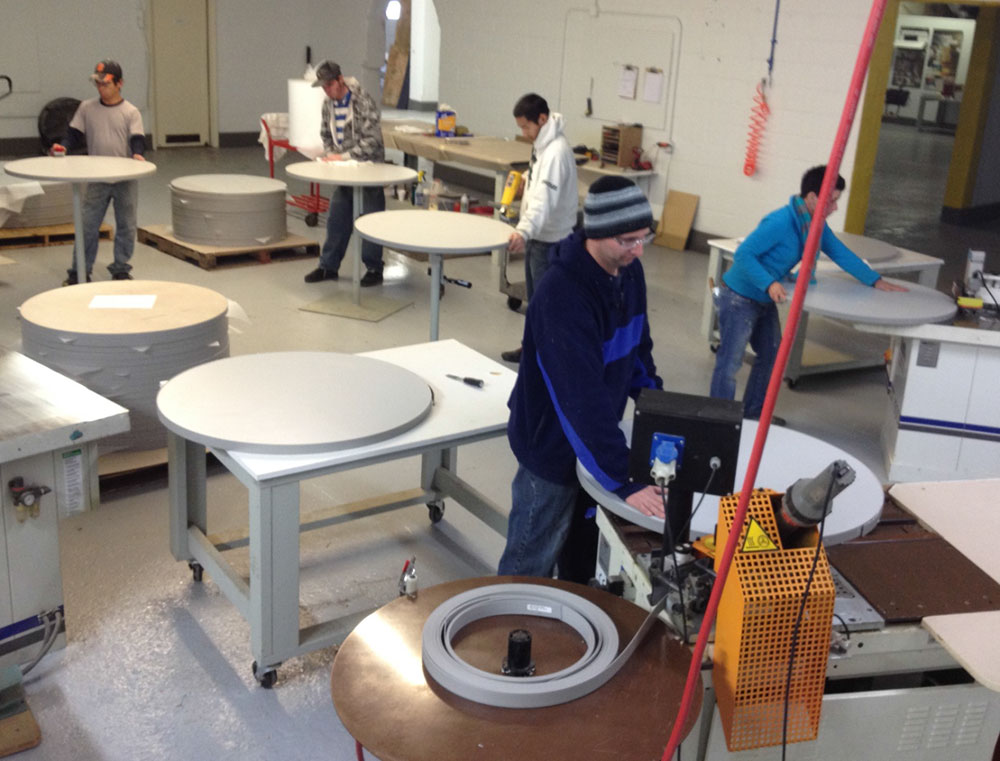 Our philosophy at Nu-Tran is to make business with us as easy as possible for you, the customer! We are able to assist our clients in creating eye catching designs in various industries. From high-end furniture to custom storage solutions, we collaborate with our clients to create the ideal products for the needs of the end user. Our diverse manufacturing process allow us to provide our clients with a few crafted components, or to mass producing pieces that need to be laminated, cut to size, routed, edge banded, or simply CNC machined a few holes. Our cost-effective ability to mass produce yet still maintain the flexibility to make a single custom piece without interruption equals an extremely affordable price! Our “one stop” processing saves our clients both time and money. We also offer free logistic planning to your facility or directly drop ship to you customer.